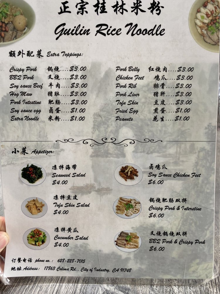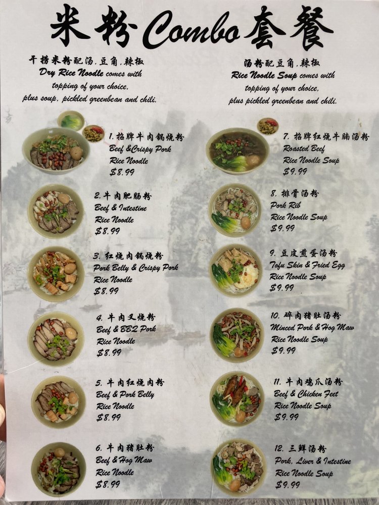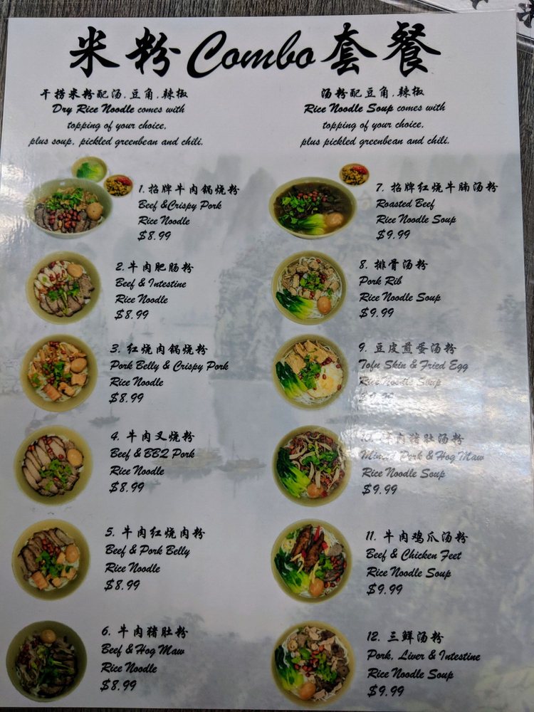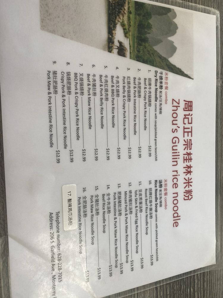 Zhou’s Guilin Ricenoodle, located in Monterey Park, CA, offers a taste of authentic Chinese cuisine with a focus on traditional Guilin ricenoodle dishes. The menu showcases a variety of flavorful and aromatic noodle dishes that are sure to satisfy your cravings. From classic beef noodle soup to spicy garlic pork noodles, each dish is meticulously prepared to perfection. The relaxed and classy ambiance of the restaurant coupled with its convenient amenities like private parking and Wi-Fi make it a perfect spot for a casual dining experience. With the option for delivery or takeout, Zhou’s Guilin Ricenoodle is a must-try for those looking to indulge in delicious Chinese comfort food. Don't miss out on this hidden gem in Monterey Park!
